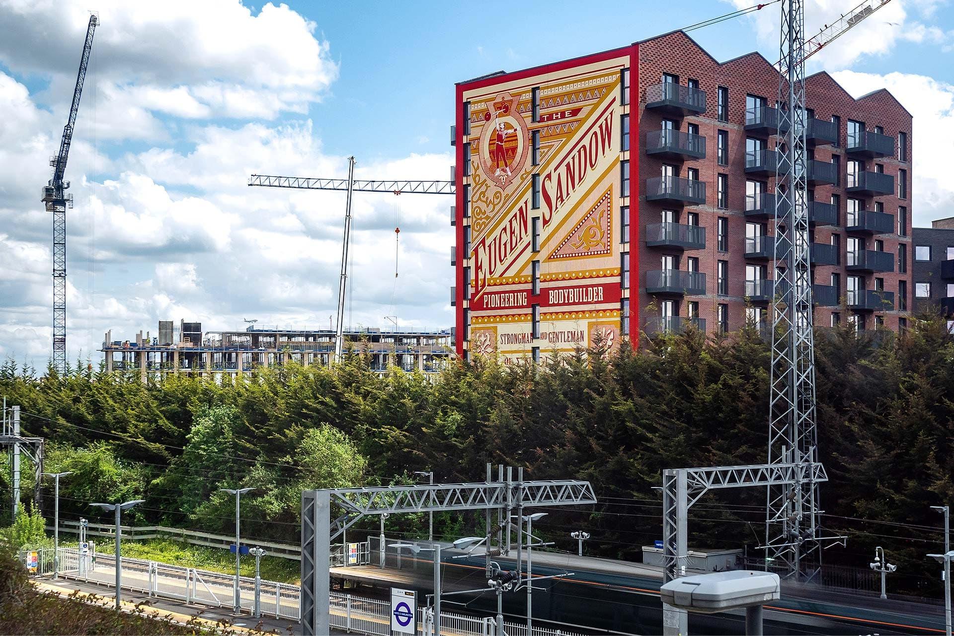 Mostramos la historia de Hayes en una exhibición épica con un mural de diez pisos de altura que celebra la vida de Eugen Sandow, un culturista pionero y ex hombre más fuerte del mundo conocido como "el padre del culturismo moderno".