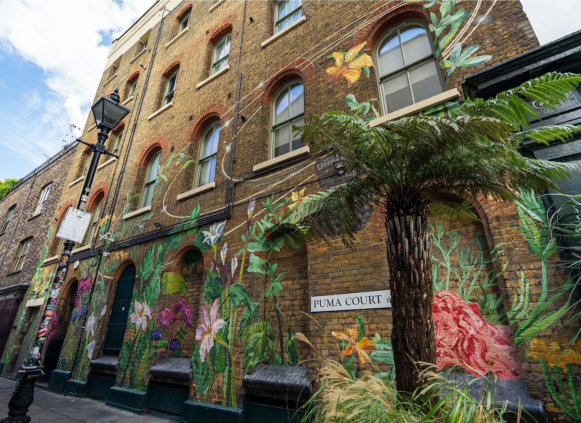 Eine wunderschöne Verbindung von Kunst und Geschichte; unsere Kunden von Essential Living beauftragten uns mit der Anfertigung eines Wandgemäldes, um den historischen Gebäuden des Puma Court, unweit der Commercial Street, neues Leben einzuhauchen und die reiche, Hunderte von Jahren alte Geschichte des Ortes zu würdigen.