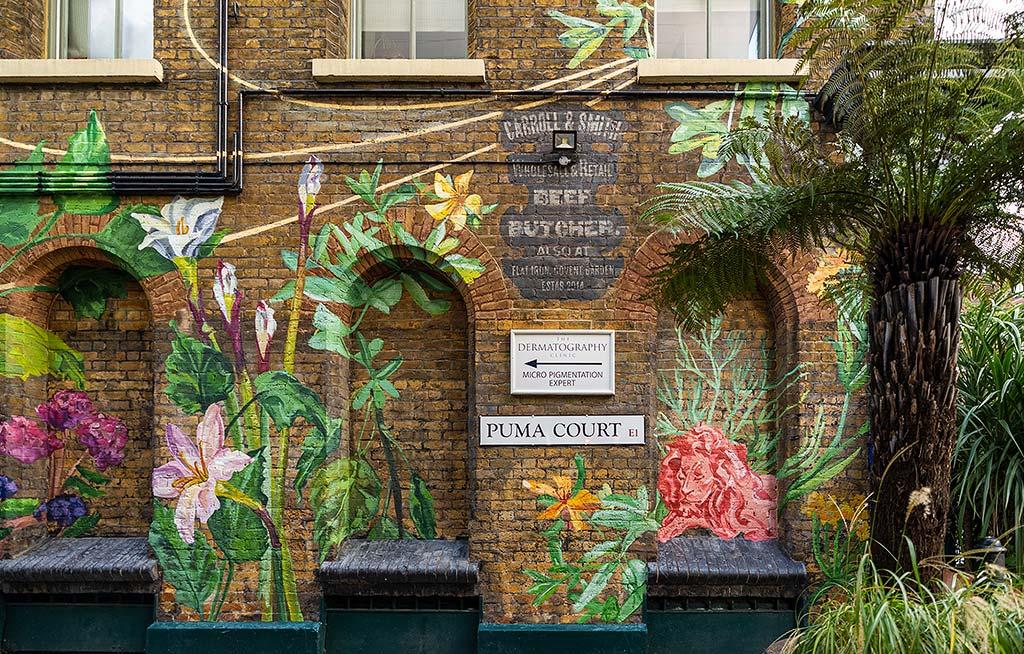Inspiriert von Nicholas Culpeper, der im 17. Jahrhundert auf dem Gelände von Puma Court lebte, ist das Wandgemälde eine Hommage an seine revolutionäre Kräuterheilkunde. Wir wählten Claire Ward-Thornton von Art Hoppers als ideale Künstlerin für dieses Projekt, da ihre Arbeit als Bühnenmalerin und ihr Engagement für eine Kunst- und psychische Gesundheitsorganisation perfekt zu den Werten des Projekts passen.