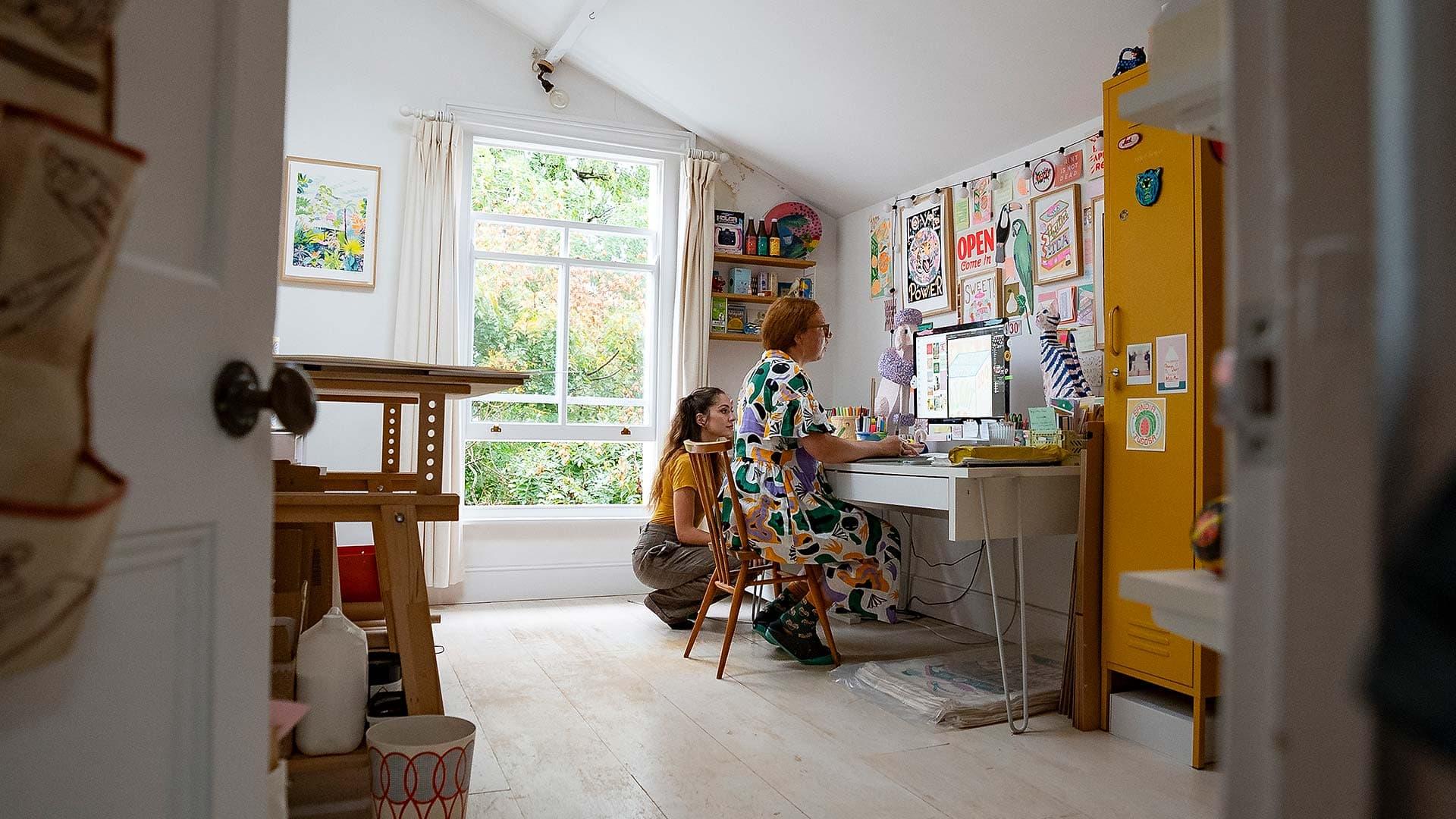 Jaqueline Colley, el talento no tan oculto detrás de los diseños dibujados a mano para todos, desde Hermès hasta el NHS, nos muestra su ecléctico enclave del este de Londres y nos da una idea de las piezas antiguas y los hallazgos del mercadillo que la mantienen inspirada. en este episodio especial de Studio Visits.