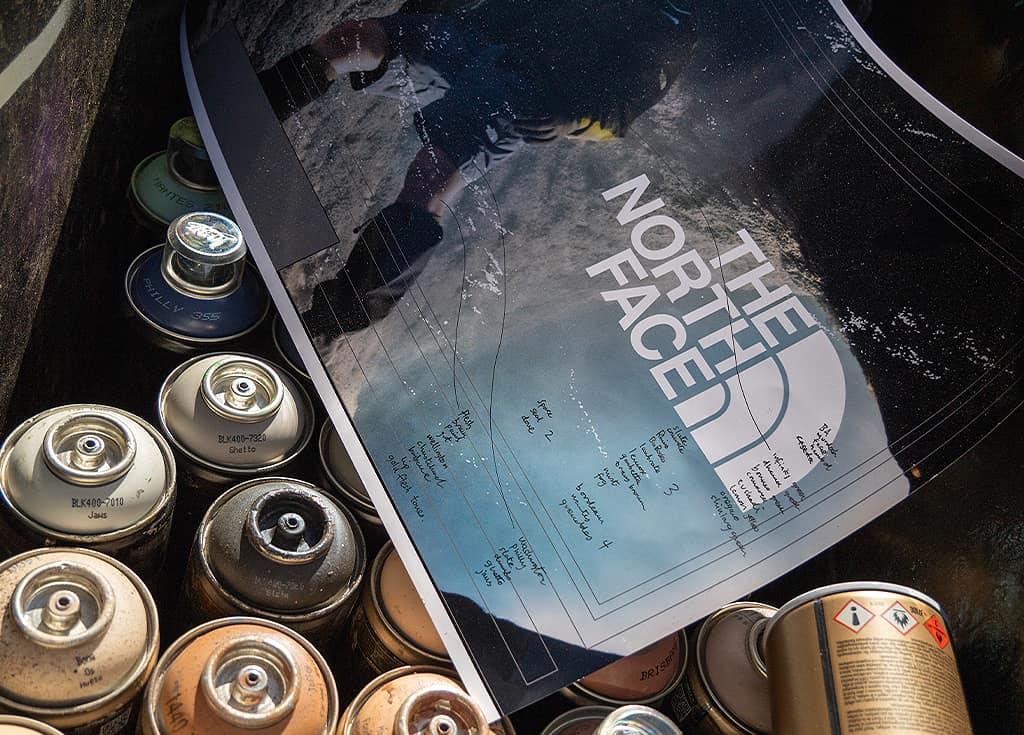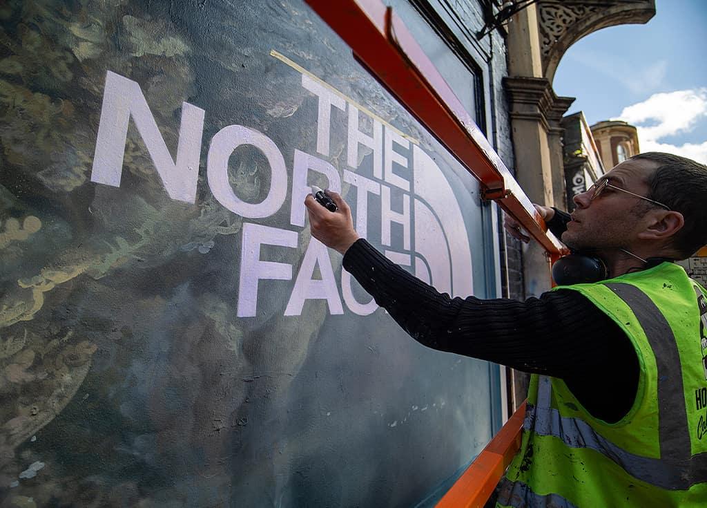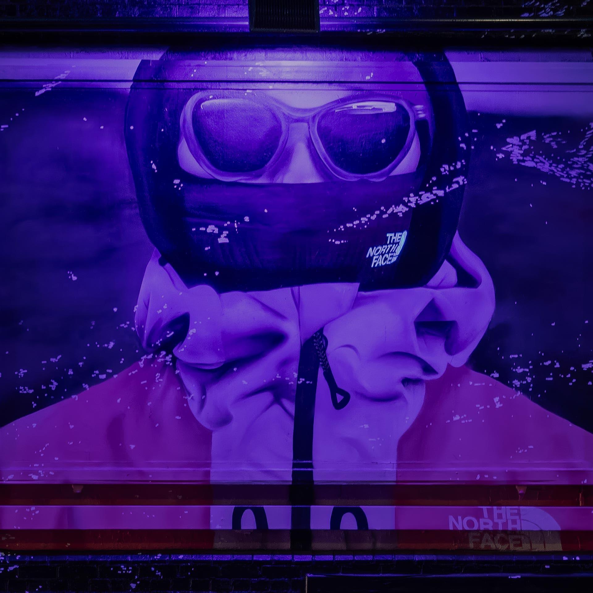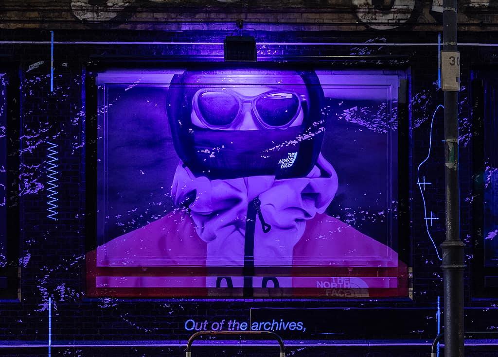 Con pintura ultravioleta e iluminación especializada, el mural pasó sin problemas del día a la noche. Los elementos ultravioleta dieron vida a las prendas de The North Face, mostrando sus cualidades únicas y reforzando la reputación de la marca de combinar estilo y rendimiento.