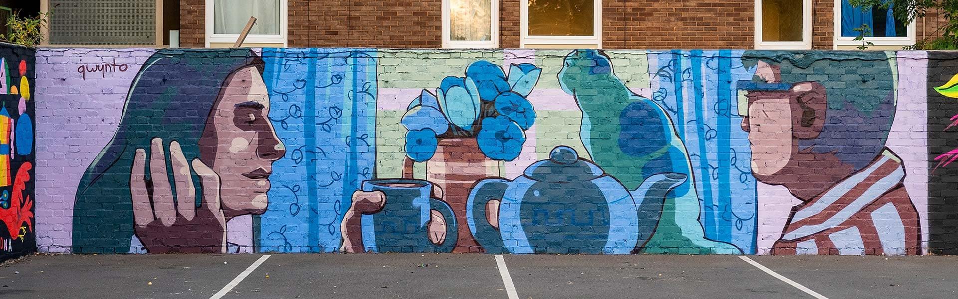 Nuestro proyecto Art for Estates convirtió una pared de 27 metros de largo en Fenwick Estate de Londres en una galería al aire libre al reunir a varios artistas para una sesión de pintura. ¡El resultado final es una fantástica variedad de estilos expuestos para que disfruten los residentes!