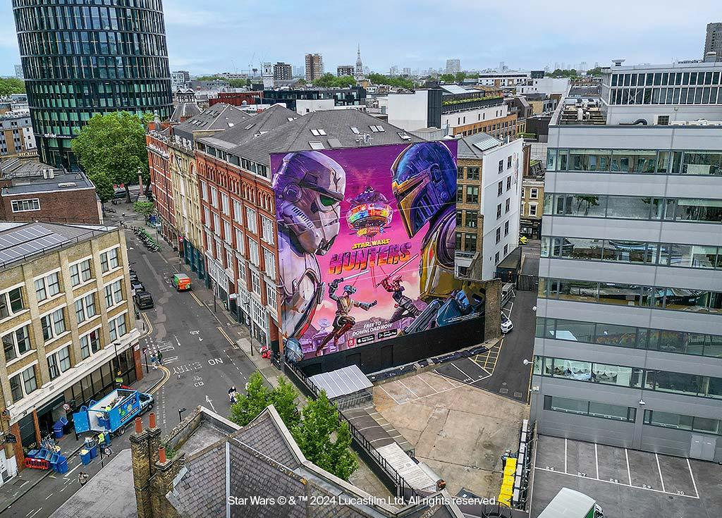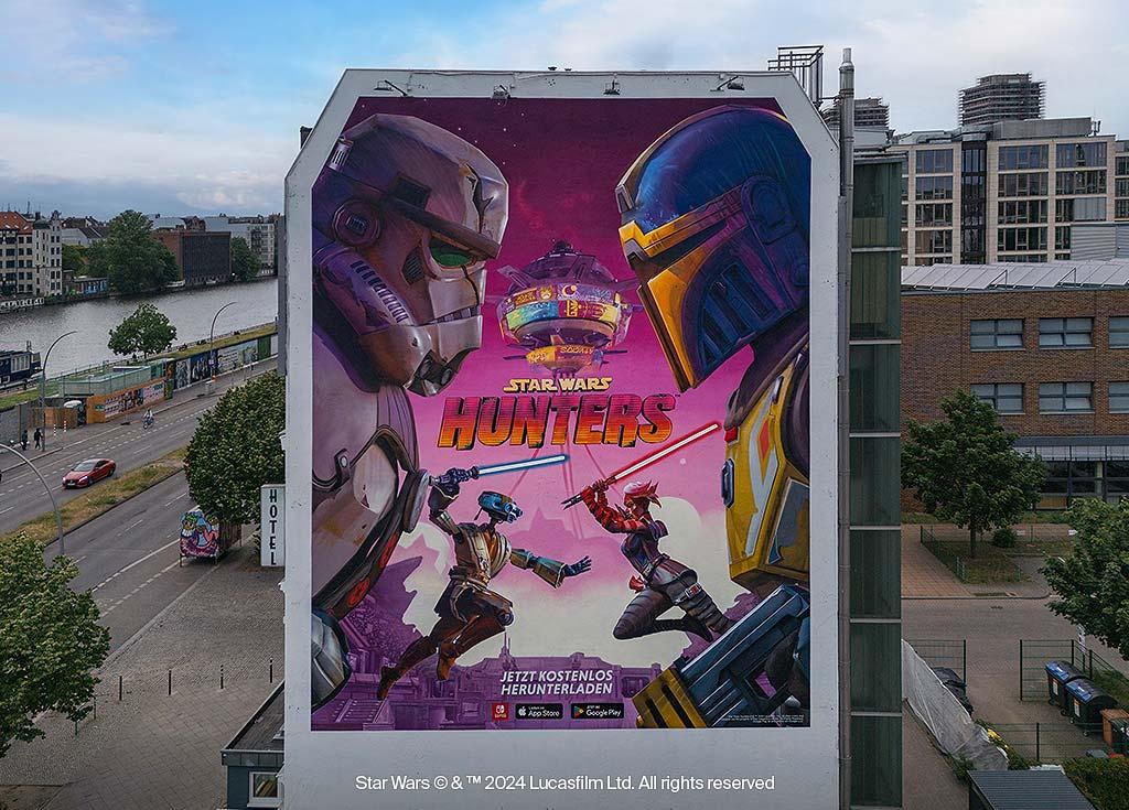 Nous avons été chargés de créer un lancement international à l'échelle galactique pour le très attendu Star Wars: Hunters de Zynga, en dévoilant de superbes peintures murales à Londres et à Berlin pour marquer les débuts épiques du jeu.