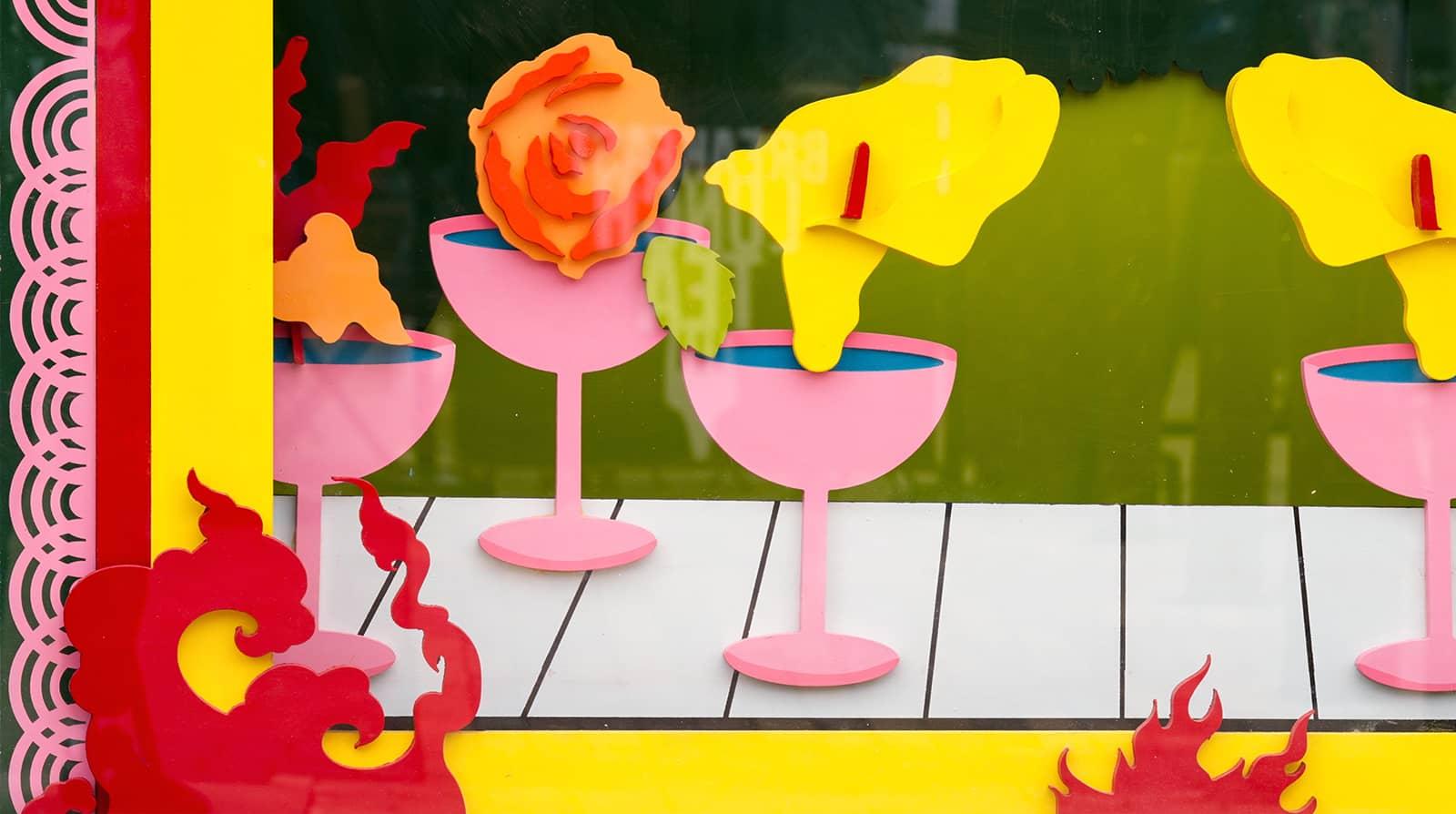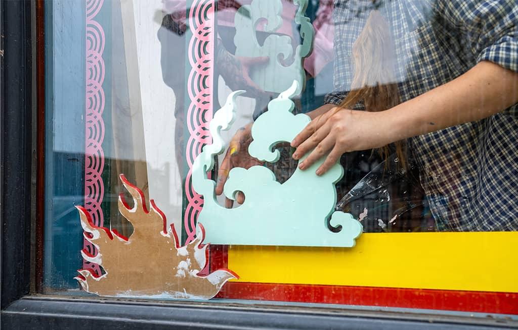 Les possibilités qu'offre la profondeur de la vitrine et l'utilisation de l'espace pour créer des couches m'ont permis d'utiliser trois ou quatre moments différents. C'est un effet 3D… En passant devant la vitrine, vous obtenez des angles différents."