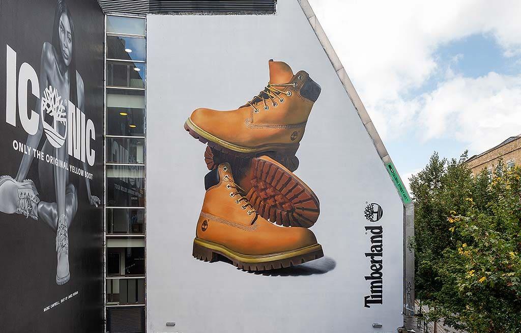 Our lead artists, Neil Edward and Pete Barber captured her perfectly, creating two hyper-realistic murals that felt just as timeless as the boots themselves. These murals turned heads, got people talking, and took the campaign beyond the street. Strategically placed in high-traffic areas, they drew attention both in-person and across digital platforms – and Timberland EU proudly shared them across their socials, pushing the reach even further.