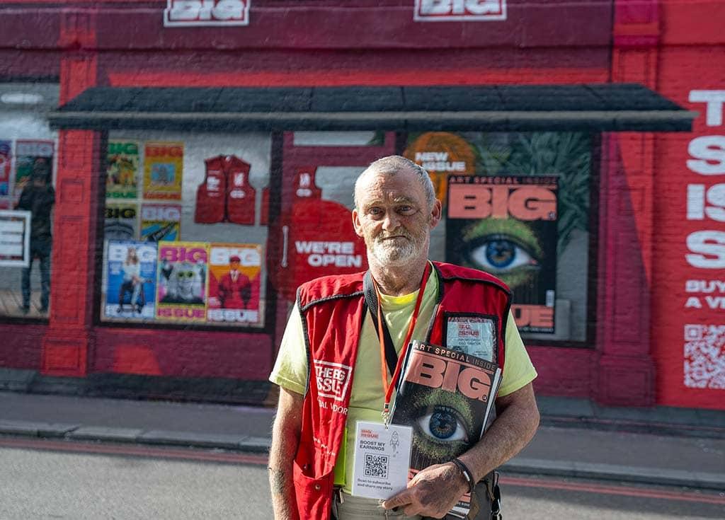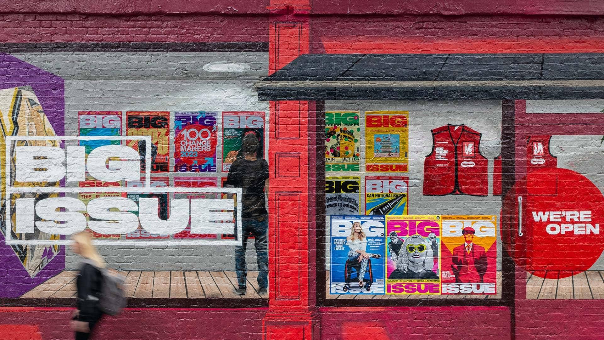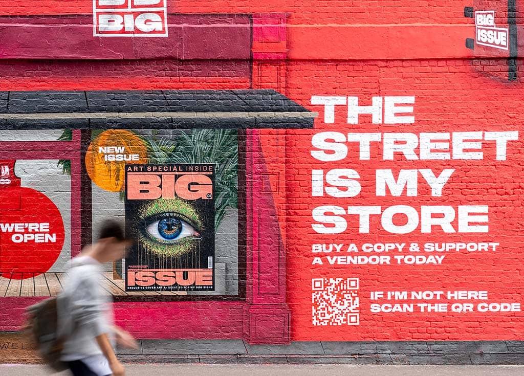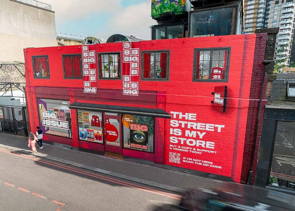 Entitled ‘The Street is My Store’, we painted a realistic 3D ‘storefront’ to give Big Issue vendors their own ‘high street location’, serving as a bold visual cue that local vendors are running their own micro businesses.