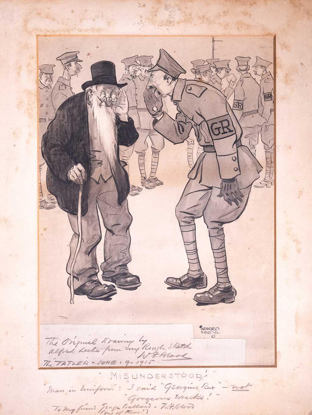 Fig. B - You know Alfred Letter even if you don’t know you do. As soon as I say “your country needs you” you’ll likely think of a very famous poster Alfred Leete designed (you know the one - Lord Kitchener!). This political cartoon from 1915, during the First World War, is about mishearing King George (Georgius Rex) for Gorgeous Wrecks... It popped up in an auction house a few years ago and was mis-listed. Alfred Leete’s signature has a distinctive ‘T’ so the auction house misread it and thought it was Alfred Lee. I didn’t bid against anyone else.
